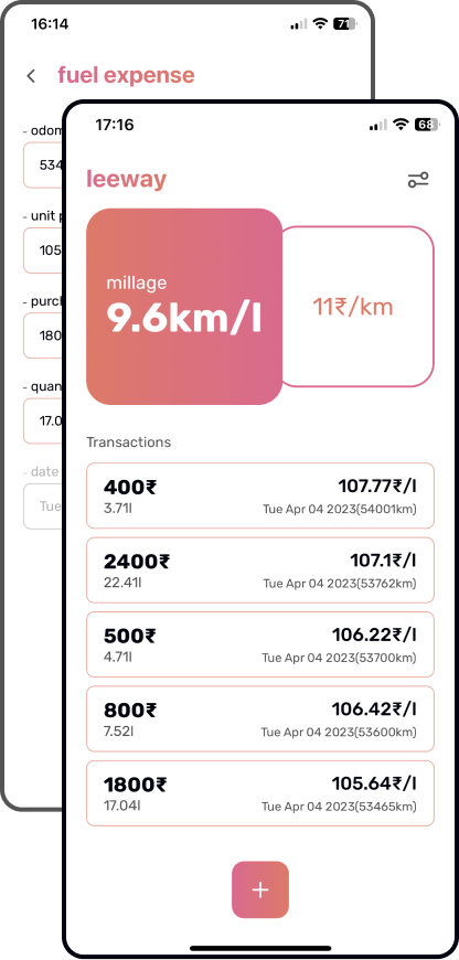 vehicle's mileage and cost per kilometer. It's a hassle-free